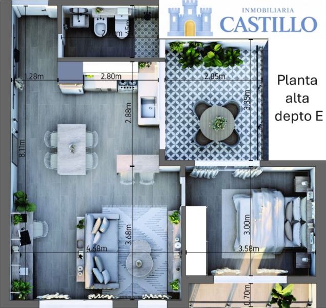 Las medidas, superficies y proporciones consignadas son aproximadas y han sido suministradas por el propietario. Las superficies definitivas surgirán del título de propiedad y/o plano correspondiente. Los valores de expensas indicados son orientativos y pueden no encontrarse actualizados al momento de la consulta. Las imágenes publicadas son de carácter ilustrativo y no contractuales.