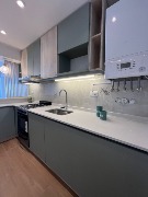 cerámico. Bacha simple Johnson o similar. Grifería monocomando FV modelo Puelo o similar. Mobiliario de diseño en melamina marca Faplac o similar, cantos de PVC, guías telescópicas y cierre suave.