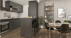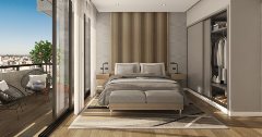 Pisos de porcelanato símil madera que diferencian estéticamente el espacio privado y de descanso del ambiente social. Incorporan calefacción por losa radiante. Incluyen placard con frente de piso a techo con interiores completos.