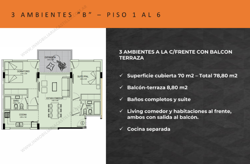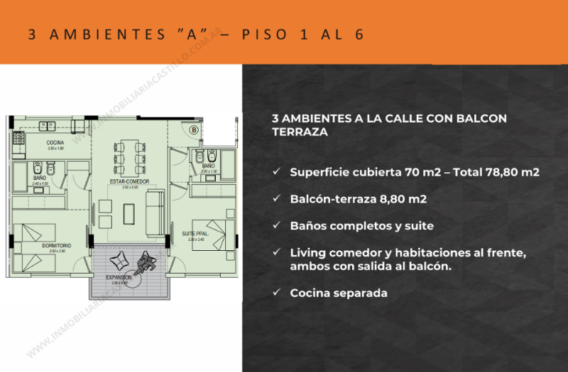 Venta en pozo! Cardiel 3700, Parque Luro. 3 ambientes a la calle con balcón saliente, piso 6. Ingreso al living-comedor, cocina semi integra, baño completo de recepción, 2 dormitorios a la calle, 1 en suite. Las medidas, superficies y proporciones consignadas son aproximadas y han sido suministradas por el propietario. Las superficies definitivas surgirán del título de propiedad y/o plano correspondiente. Los valores de expensas indicados son orientativos y pueden no encontrarse actualizados al momento de la consulta. EDIFICIO 6 PISOS 24 UNIDADES DE 2 Y 3 AMBIENTES A ESTRENAR CON COCHERAS CUBIERTAS SUBTERRANEAS. FORMAS DE PAGO ✓ Efectivo (Consultar permutas menor/mayor valor, terrenos). ✓ 30% anticipo y cuotas en PESOS actualizadas al CAC CONDICIONES GENERALES ✓ Gastos de escritura a cargo del comprador (Escritura, sellados, IVA 10,5% , Impuesto a las ganancias 3% y proporcional reglamento de copropiedad) Gastos calculados sobre el monto de escrituración, en pesos al dólar oficial. ✓ Escribanía designada ✓ POSESIÓN –MARZO 2027 Las medidas, superficies y proporciones consignadas son aproximadas y han sido suministradas por el propietario. Las superficies definitivas surgirán del título de propiedad y/o plano correspondiente. Los valores de expensas indicados son orientativos y pueden no encontrarse actualizados al momento de la consulta.